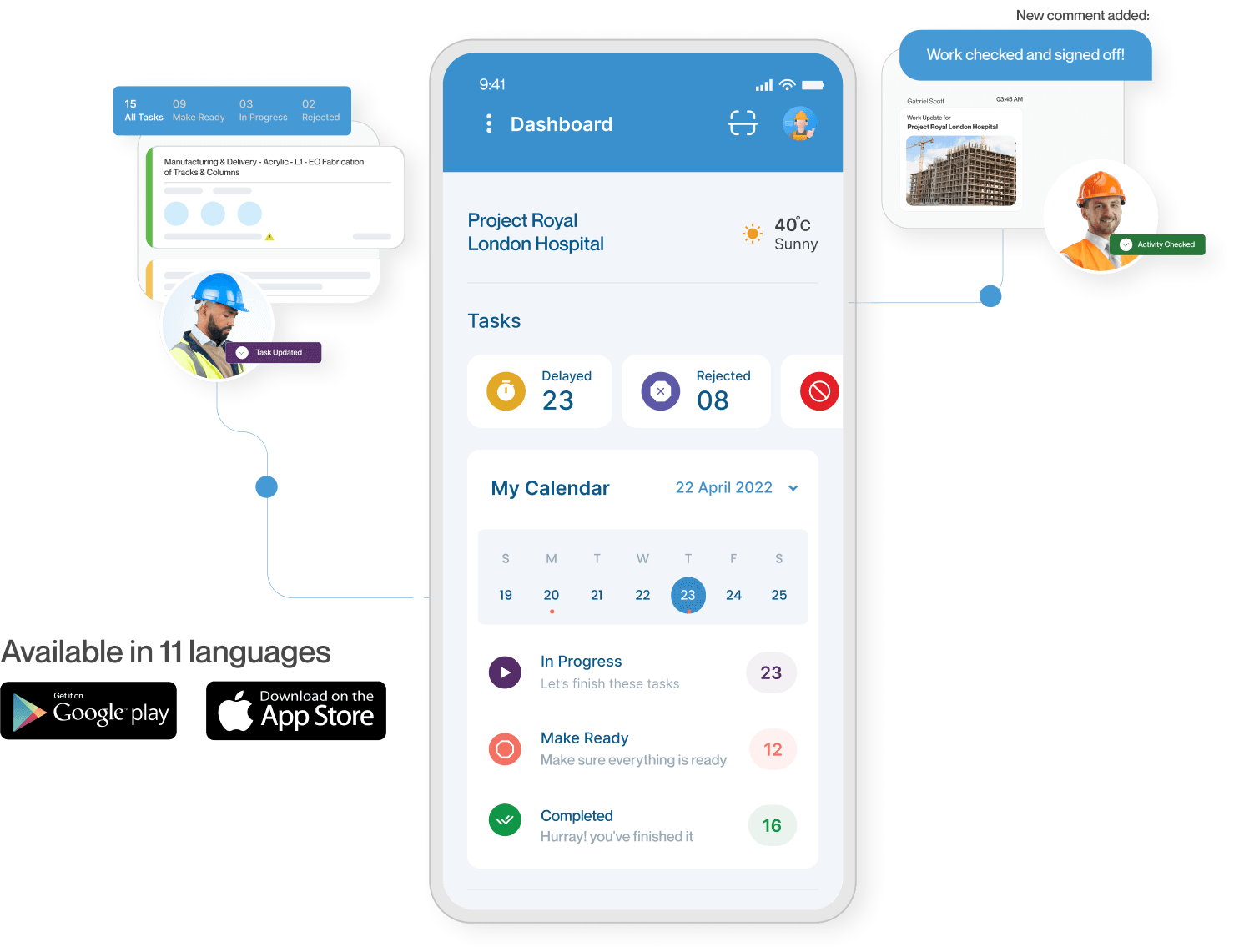 Generate automated Daily Progress Reports DPR for projects. Access the status of Tasks in Progress, Completed, Quality Approved, Marked for Rework, Stopped, etc right from your inbox.
