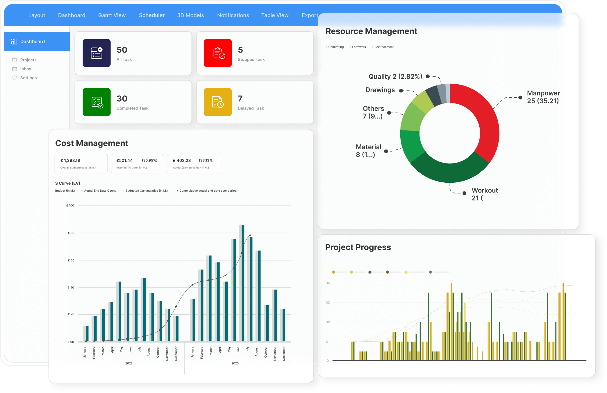 Customised according to exact project needs! Review updated status from performance to resource and cost management for effective project controls.