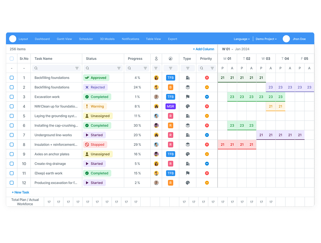Visualise tasks, progress, and constraints on the map in complex linear infra projects. Our GIS-integrated management system enables real-time project progress in spatial analytics.