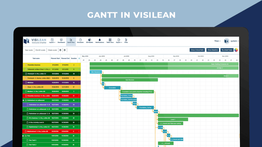 Gantt Chart in VisiLean is one of the most popular and simplified ways of showing activities (tasks or events) against time because of its uniqueness of visualising work status through colours. This view is developed in conjunction with the demands of construction managers, capturing what they want to see in the traditional Gantt. It’s an answer to getting real-time visibility and status of your multiple tasks in the same view.